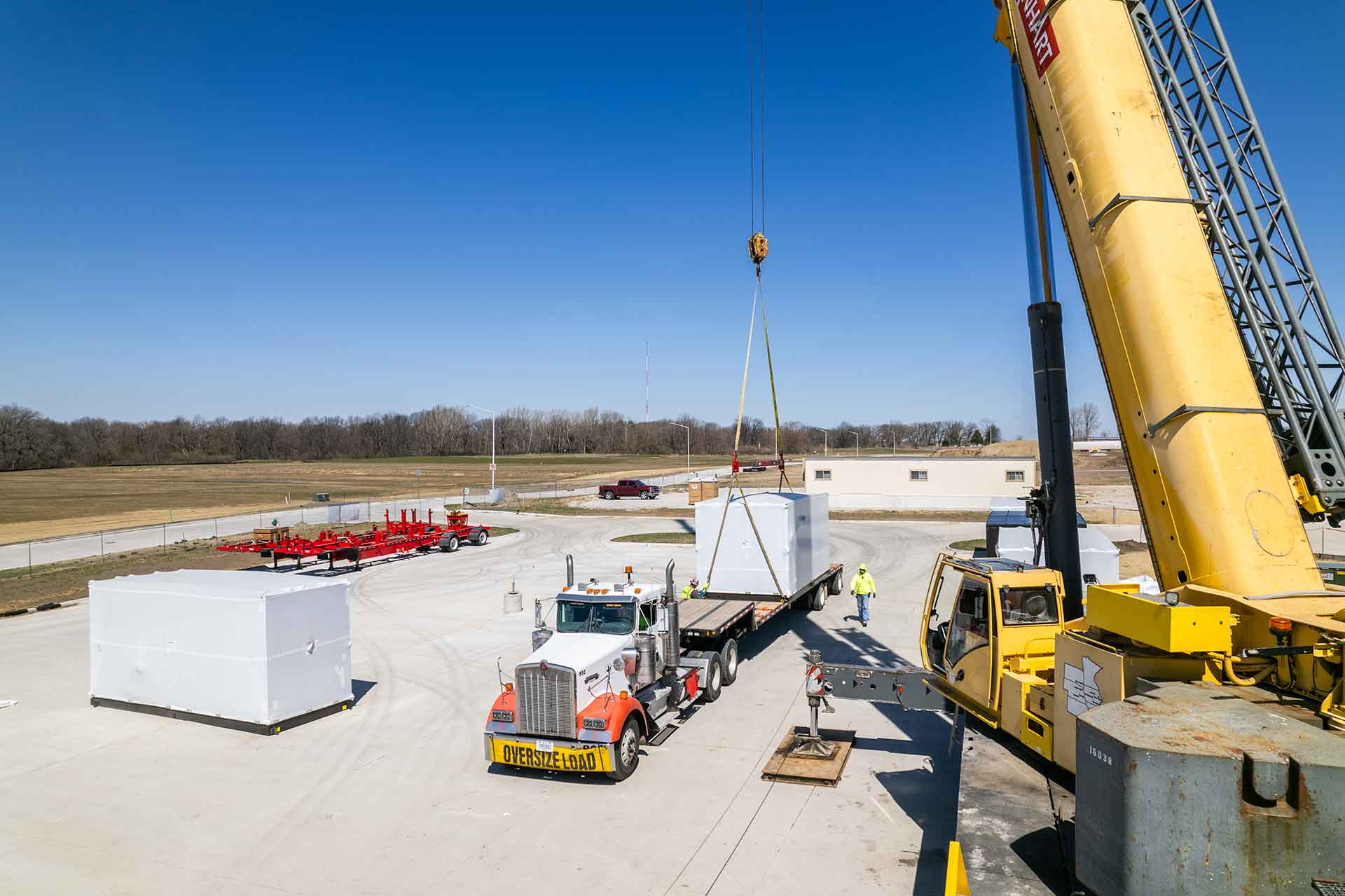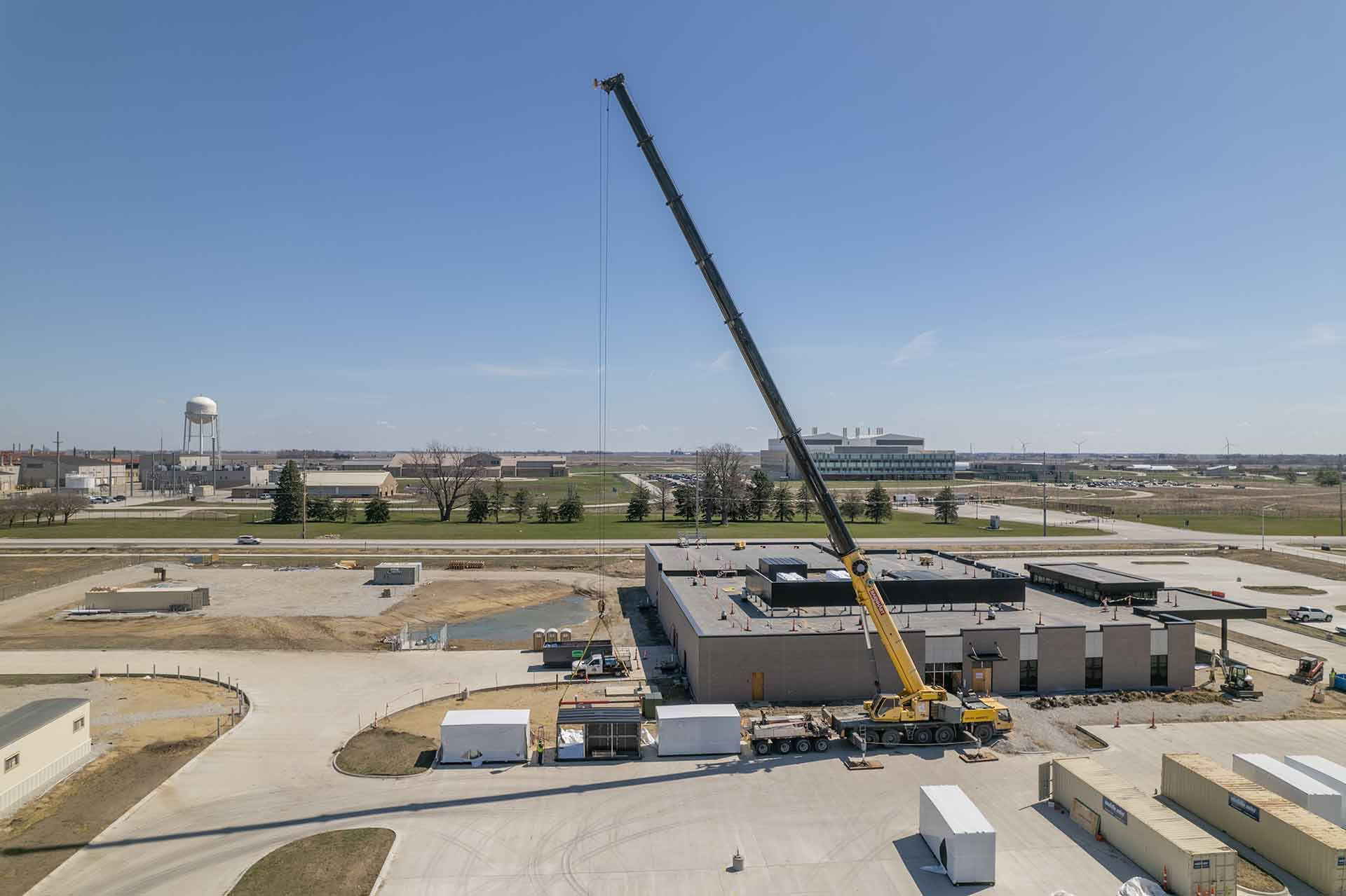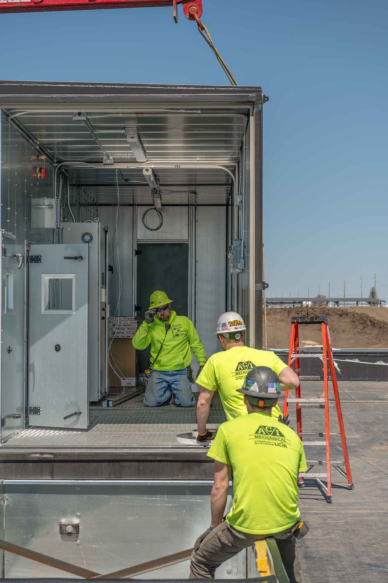 The project team at Ames Surgery Center cranes AHU’s 1 & 2 to the roof of the new building