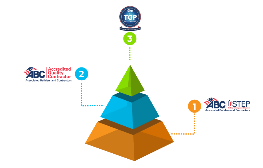 STEP serves as the cornerstone for all ABC members dedicated to safety excellence. It entails a self-assessment of company’s dedication to health and safety, offering six qualification levels. Attaining Gold level or above renders the company is eligible to pursue the Accredited Quality Contractor credential.
