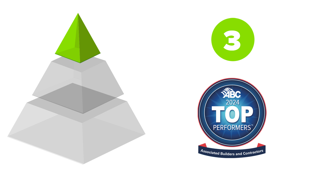ABC’s Top Performers consist of contractor members who achieved ABC STEP Gold status or higher (based on 2022 safety data) and earned ABC’s AQC credential in 2023. ABC member companies are ranked from No. 1 to 250—increased from 200 in 2023—based on work hours reported in their 2023 STEP applications.